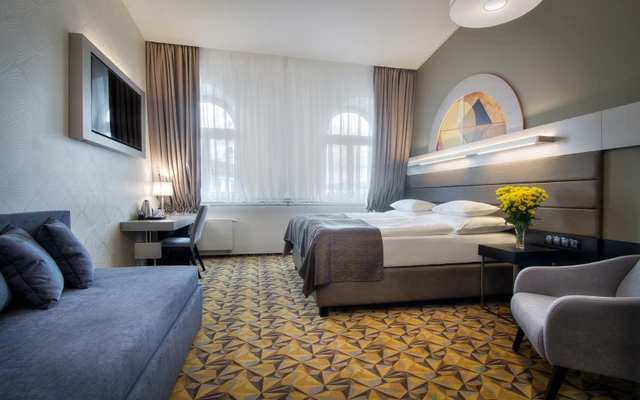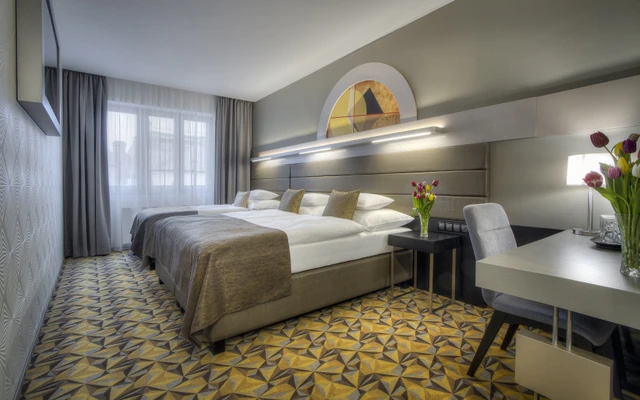Our interiors boast a contemporary design inspired by the Czech Art Deco style, paying homage to the hotel's historic facade dating back to 1921. With a focus on elegance and sophistication, Hotel Essence provides conference facilities and garage parking to cater to your needs. Each of our stylish rooms features individually adjustable air conditioning, smart TVs, and complimentary high-speed WiFi, ensuring a comfortable and connected stay for our guests. Experience the essence of Prague hospitality at Hotel Essence, where modern amenities meet timeless charm.